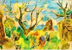 An incredibly complex and fanciful work with ghost ships, tree monsters, air, trees and sea. It measures 31 1/2 X 21 1/2. |