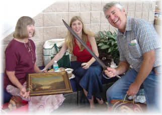 After Appraisals. Attendees with a worthless sword, and a $300.00 oil painting. |