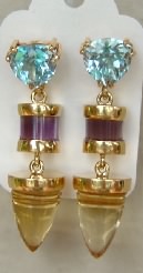 Above: Blue topaz, amethyst and citrine earrings. |