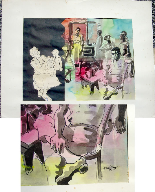 Copy from Studio International, googled Gloria Escoffery. The Jamaican painter, teacher, poet and art critic died in 2002, aged 78. She had been a major element in the Jamaican art movement of the 1940s and 1950s. Her work combined regional mythology, satire and social comment, with an individual symbolism of a figurative vein. Escoffery sprang from the developing Jamaican middle class, yet felt rooted in Jamaican rural society and folk culture. Her father, a doctor, descended from white Haitians who had left Haiti at the time of the oppressive revolution, and she numbered Jewish and English Jamaicans among her ancestors. This enabled her to stand apart as a thinker and critic from conventions, and yet be constructively productive in advancing regional self-imagery. She was the scholar from Jamaica to McGill University, Canada, in l942, and on her return was befriended by the Manley family, leaders of the People's National Party in pre-independence Kingston. She was made literary editor of their weekly journal, Public Opinion. From 1950 to 1952 she was a student at the Slade School of Art in London (at which Lucian Freud was then teaching). On returning she became one of the country's national realist group of painters. Gradually her work took on new influences and became more experimental. Her work was included in the watershed exhibition mounted in the Smithsonian Institution, Jamaican Art. Later on, she completed a major series of five panels, which drew upon her Middle Eastern roots. She maintained all her life an active involvement in the teaching fraternity, yet without ever losing her close affiliation to the rural Jamaica she knew and understood. Her own memorial she saw as the fulfilment of the Town cultural centre, centred around her own library of 1000 at books in the grounds of her house. She also published two collections of poetry, and is well received in her homeland and beyond.